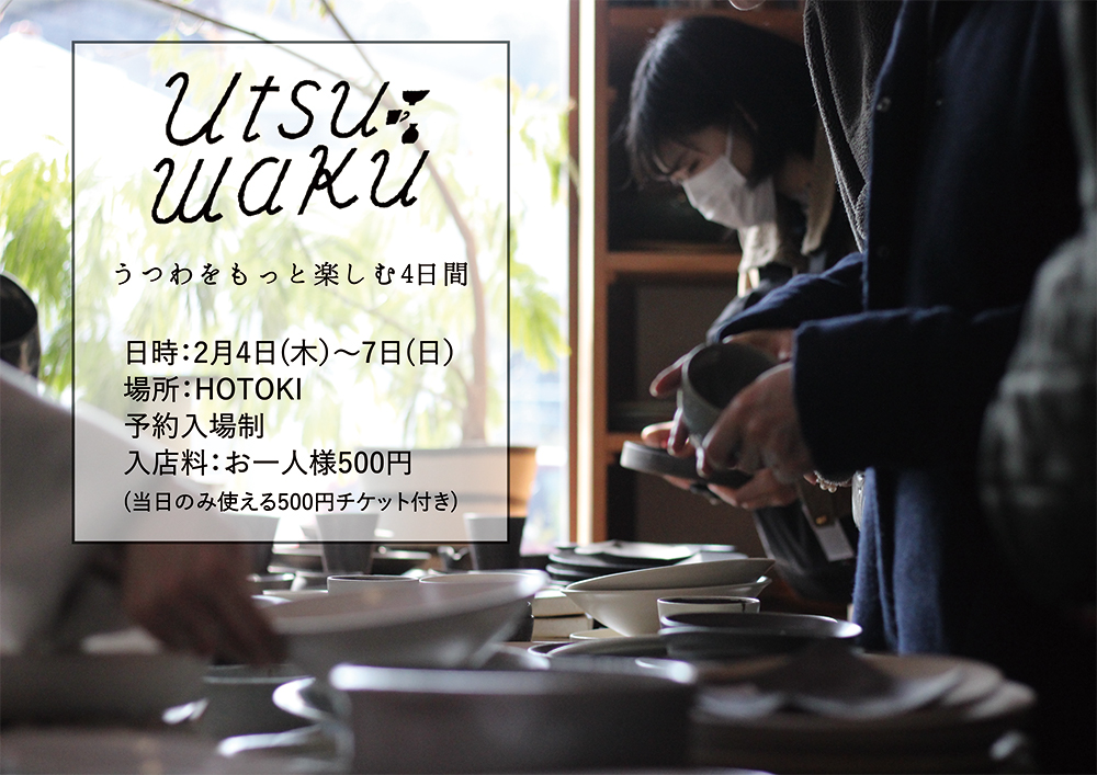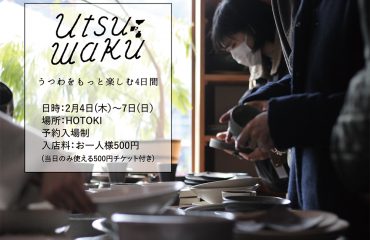 2月4日(木)〜7日(日)にHOTOKIにて開催する『うつわをもっと楽しむ4日間 utsuwaku』についてのお知らせです。