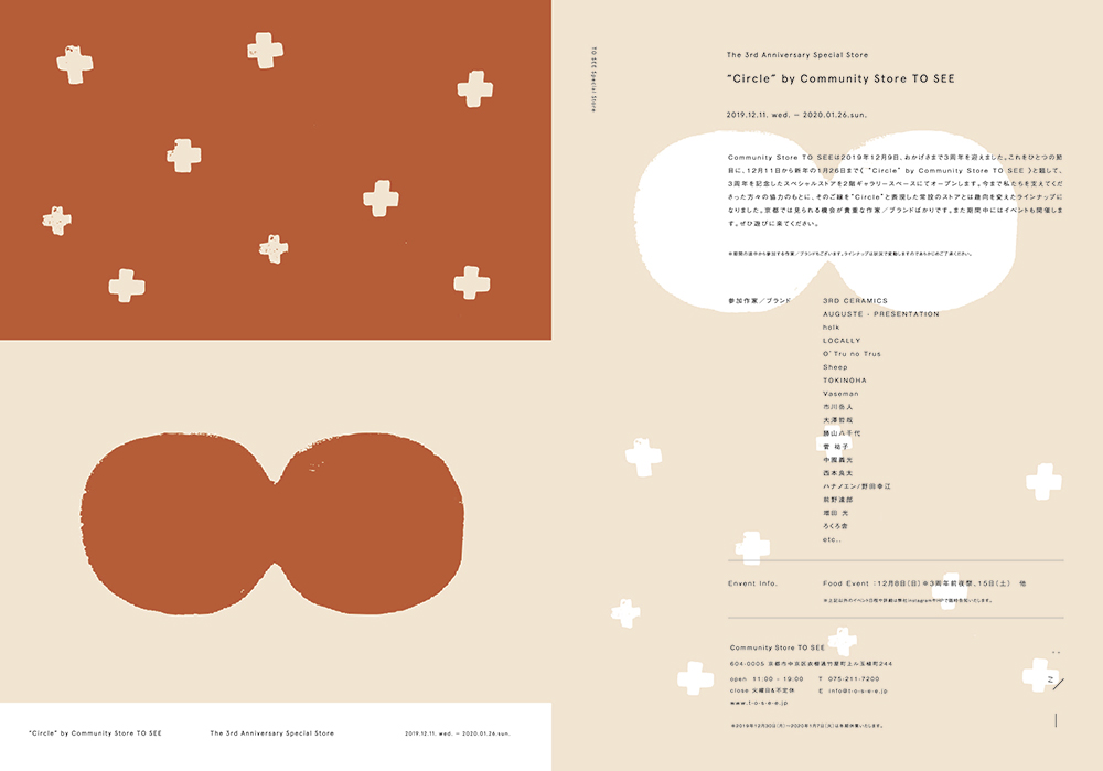 Community Store TO SEEは2019年12月9日で3周年を記念して、12月11日から新年の1月26日まで《 “Circle” by Community Store TO SEE 》と題して、3周年を記念したスペシャルストアを2階ギャラリースペースにてオープンされています。