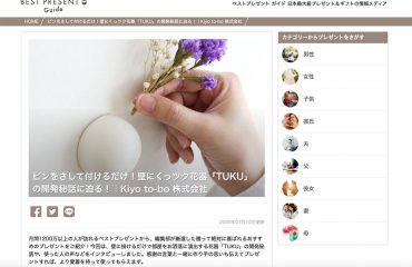 メインニュース 2020.06.10 【メディア掲載のお知らせ】 プレゼントの探し方や選び方を解説する情報サイト ベストプレゼントガイドで 「TUKU」が紹介されました。 商品のバックグラウンドストーリー(開発時の裏話など)が掲載されています。 https://bp-guide.jp/AXAzS33n